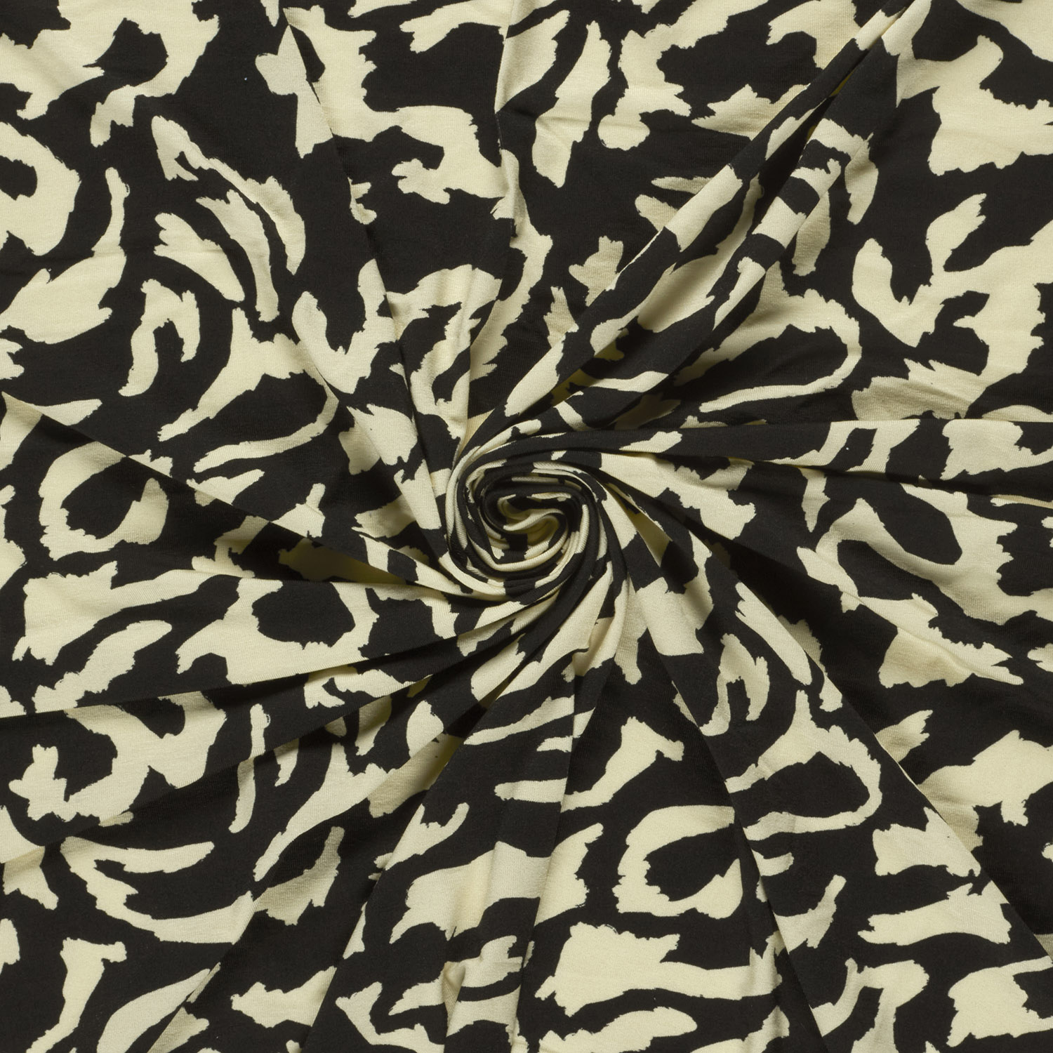 Dieser Viskosejersey überzeugt mit einem modernen, grafischen Allover-Print in klassischem Schwarz-Beige. Das abstrakte Muster erinnert an einen angesagten Animal-Look und verleiht jedem Outfit eine stilvolle, trendbewusste Note. Dank des hohen Viskoseanteils ist der Stoff besonders weich, atmungsaktiv und angenehm kühl auf der Haut. Die elastische Qualität sorgt für eine schöne Passform und einen fließenden Fall – ideal für feminine und bequeme Kleidung.