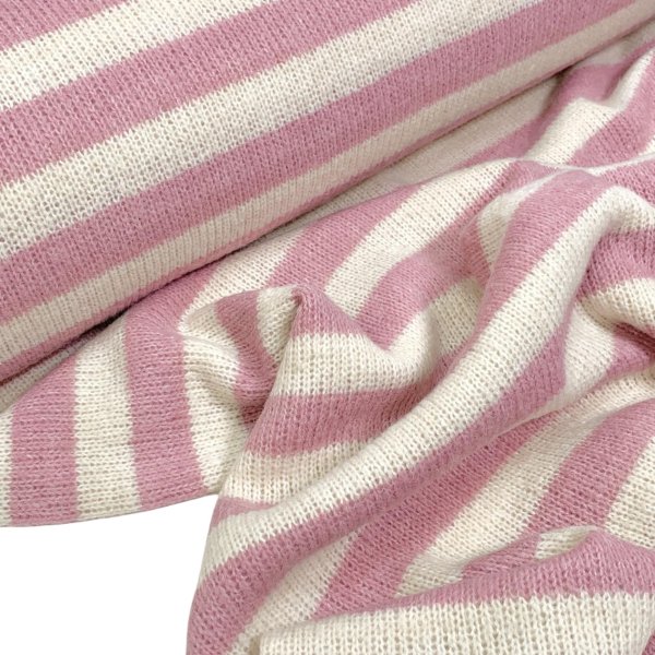 Wunderschöner leichter "glatt rechts" Strick mit Wollanteil. Das zeitlose Ringeldesign gibt es in vier freundlichen Farbkombinationen. Der Strick eignet sich hervorragend für leichte Strickjacken, Strickkleider, Pullover, Dreieckstücher uvm.